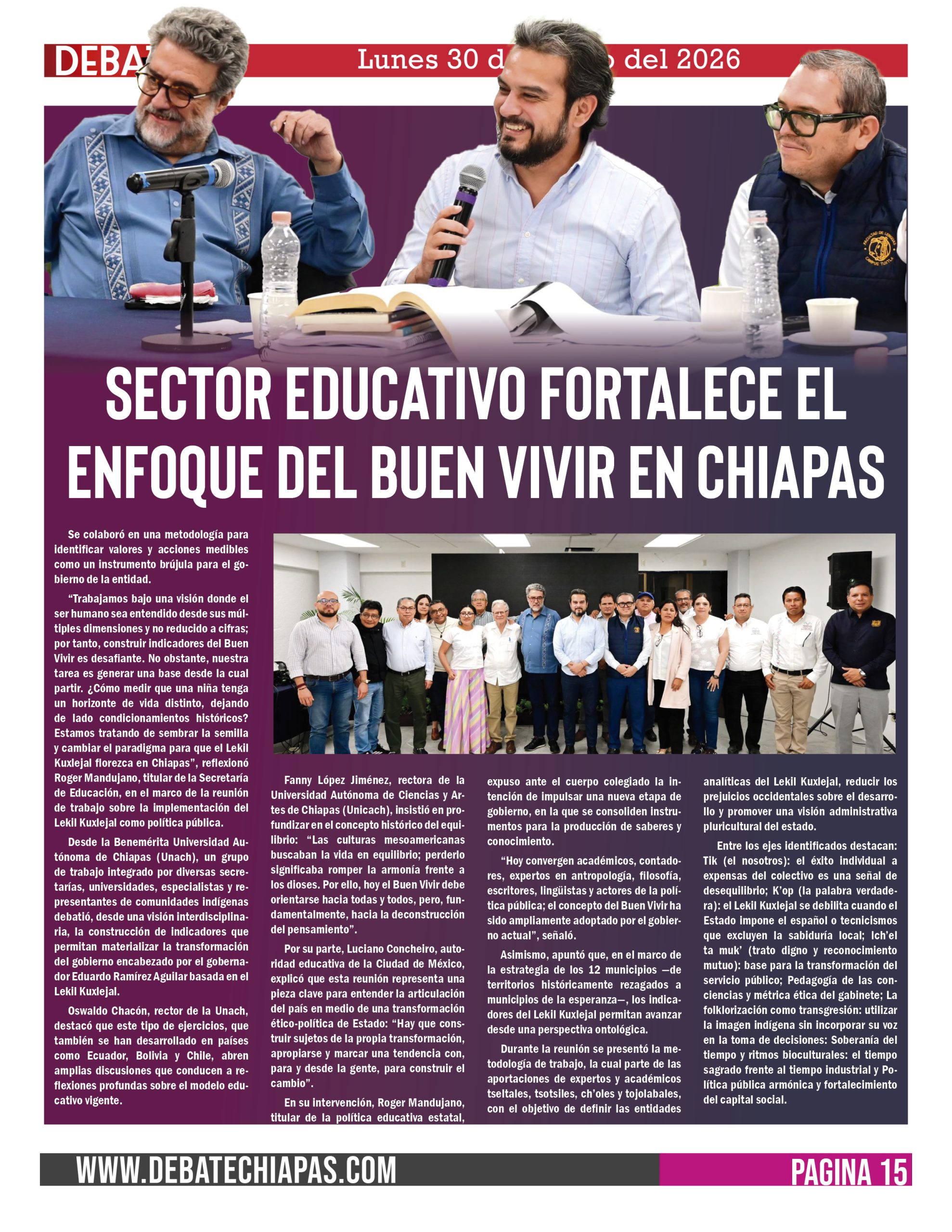 Desde la Benemérita Universidad Autónoma de Chiapas (Unach), un grupo de trabajo integrado por diversas secretarías, universidades, especialistas y representantes de comunidades indígenas debatió, desde una visión interdisciplinaria, la construcción de indicadores que permitan materializar la transformación del gobierno encabezado por el gobernador Eduardo Ramírez Aguilar basada en el Lekil Kuxlejal.