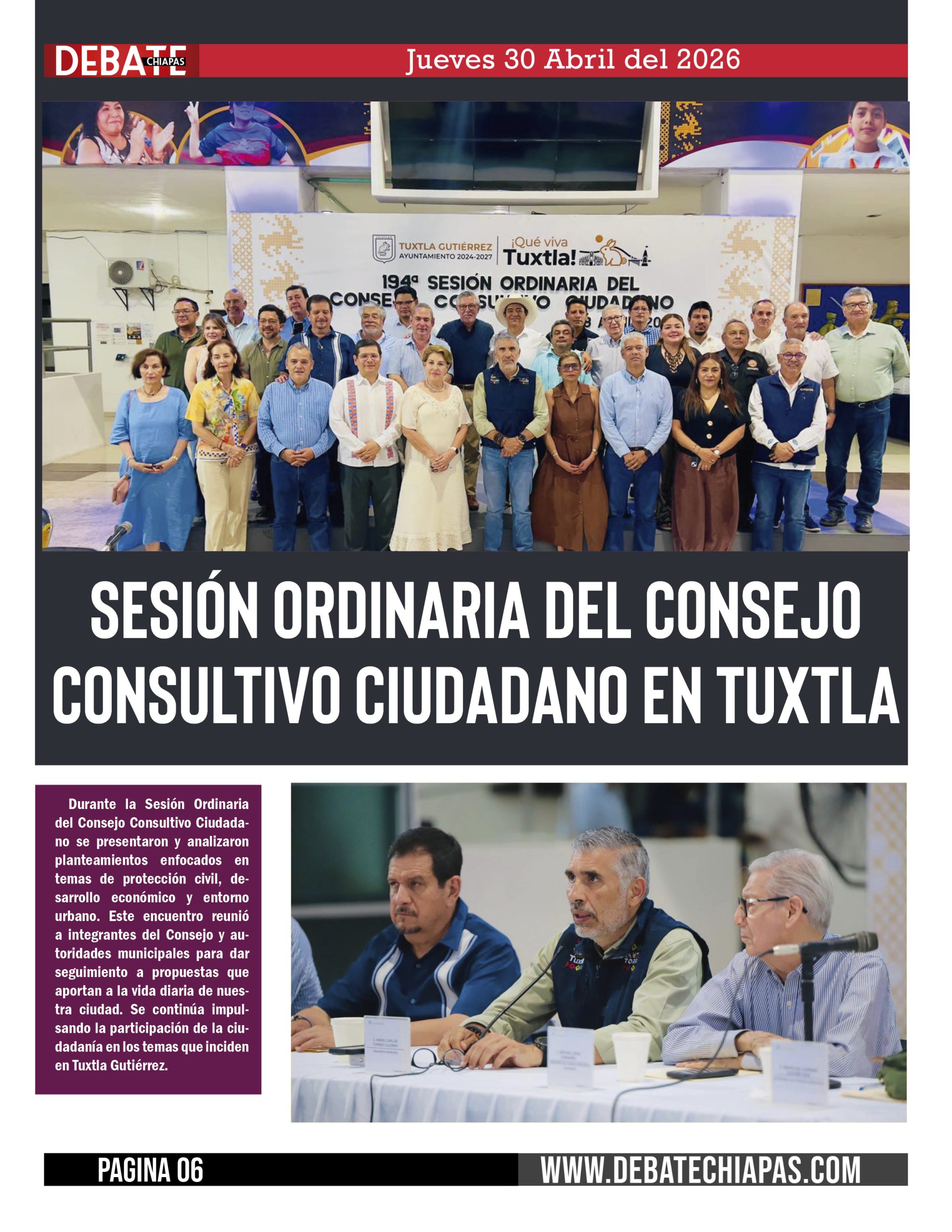 Durante la Sesión Ordinaria del Consejo Consultivo Ciudadano se presentaron y analizaron planteamientos enfocados en temas de protección civil, desarrollo económico y entorno urbano. Este encuentro reunió a integrantes del Consejo y autoridades municipales para dar seguimiento a propuestas que aportan a la vida diaria de nuestra ciudad. Se continúa impulsando la participación de la ciudadanía en los temas que inciden en Tuxtla Gutiérrez.
