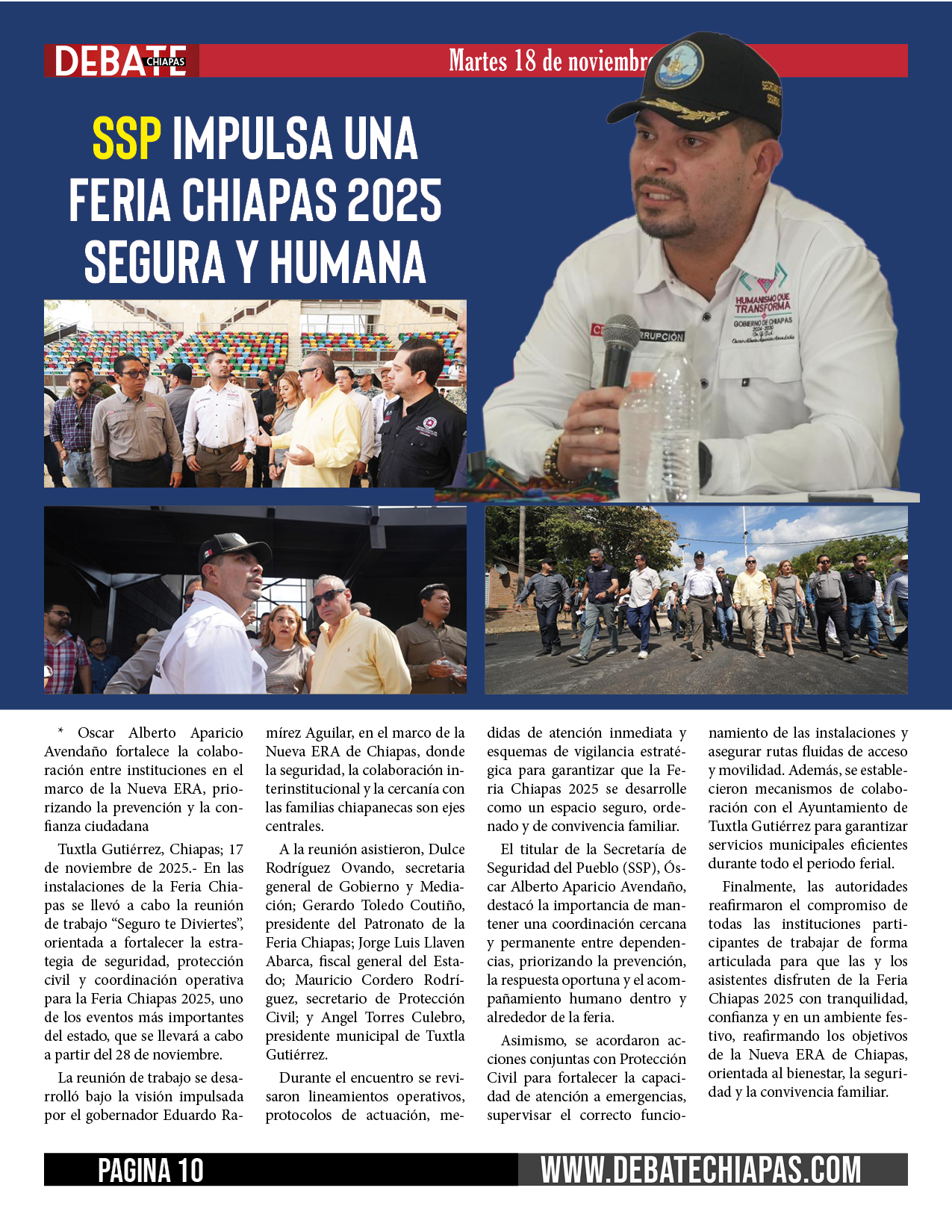 Tuxtla Gutiérrez, Chiapas; 17 de noviembre de 2025.- En las instalaciones de la Feria Chiapas se llevó a cabo la reunión de trabajo “Seguro te Diviertes”, orientada a fortalecer la estrategia de seguridad, protección civil y coordinación operativa para la Feria Chiapas 2025, uno de los eventos más importantes del estado, que se llevará a cabo a partir del 28 de noviembre.