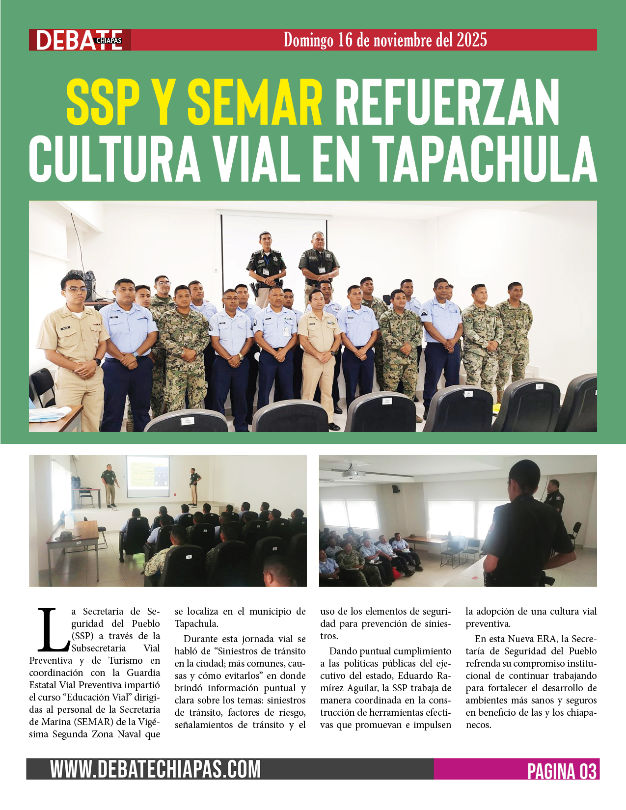 En esta Nueva ERA, la Secretaría de Seguridad del Pueblo refrenda su compromiso institucional de continuar trabajando para fortalecer el desarrollo de ambientes más sanos y seguros en beneficio de las y los chiapanecos.