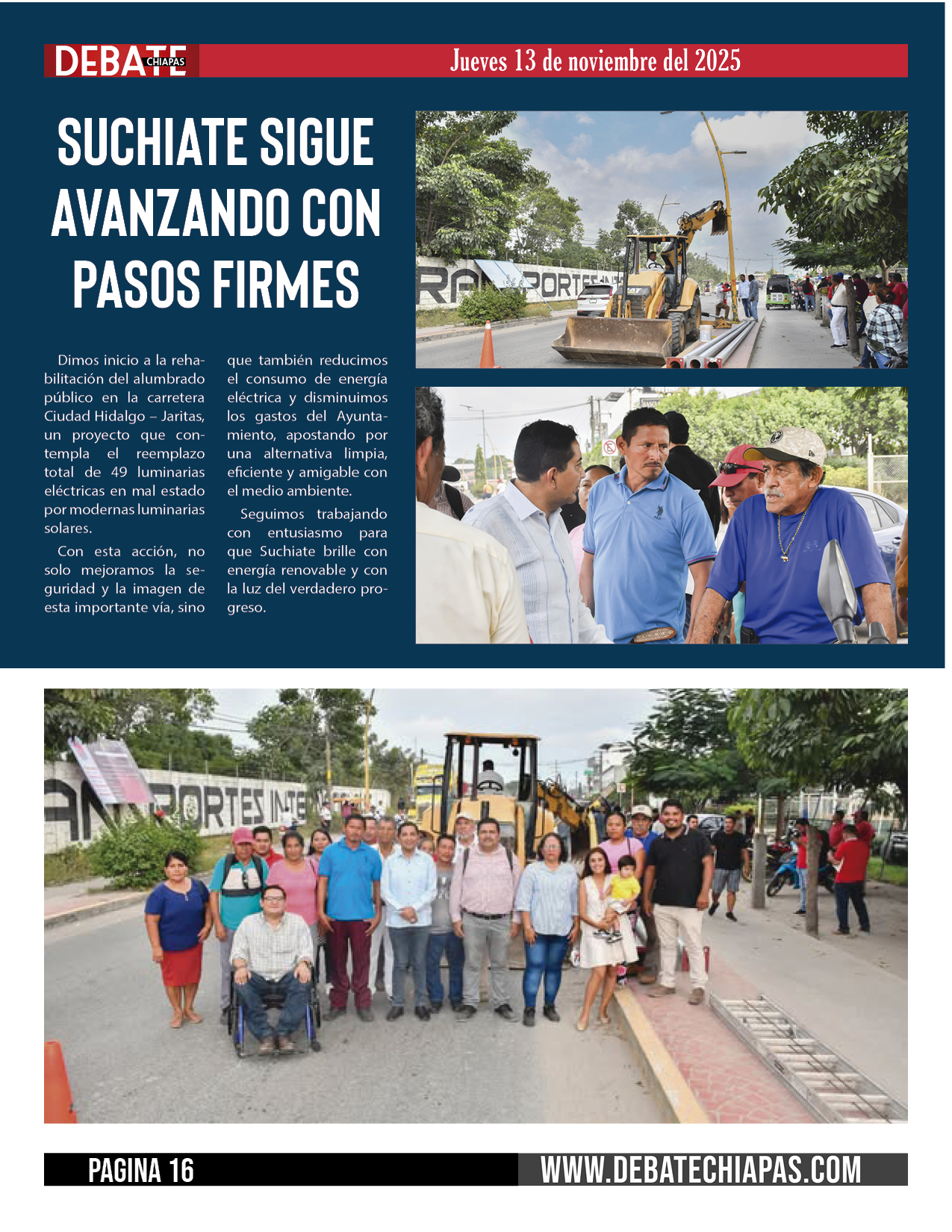 Seguimos trabajando con entusiasmo para que Suchiate brille con energía renovable y con la luz del verdadero progreso.