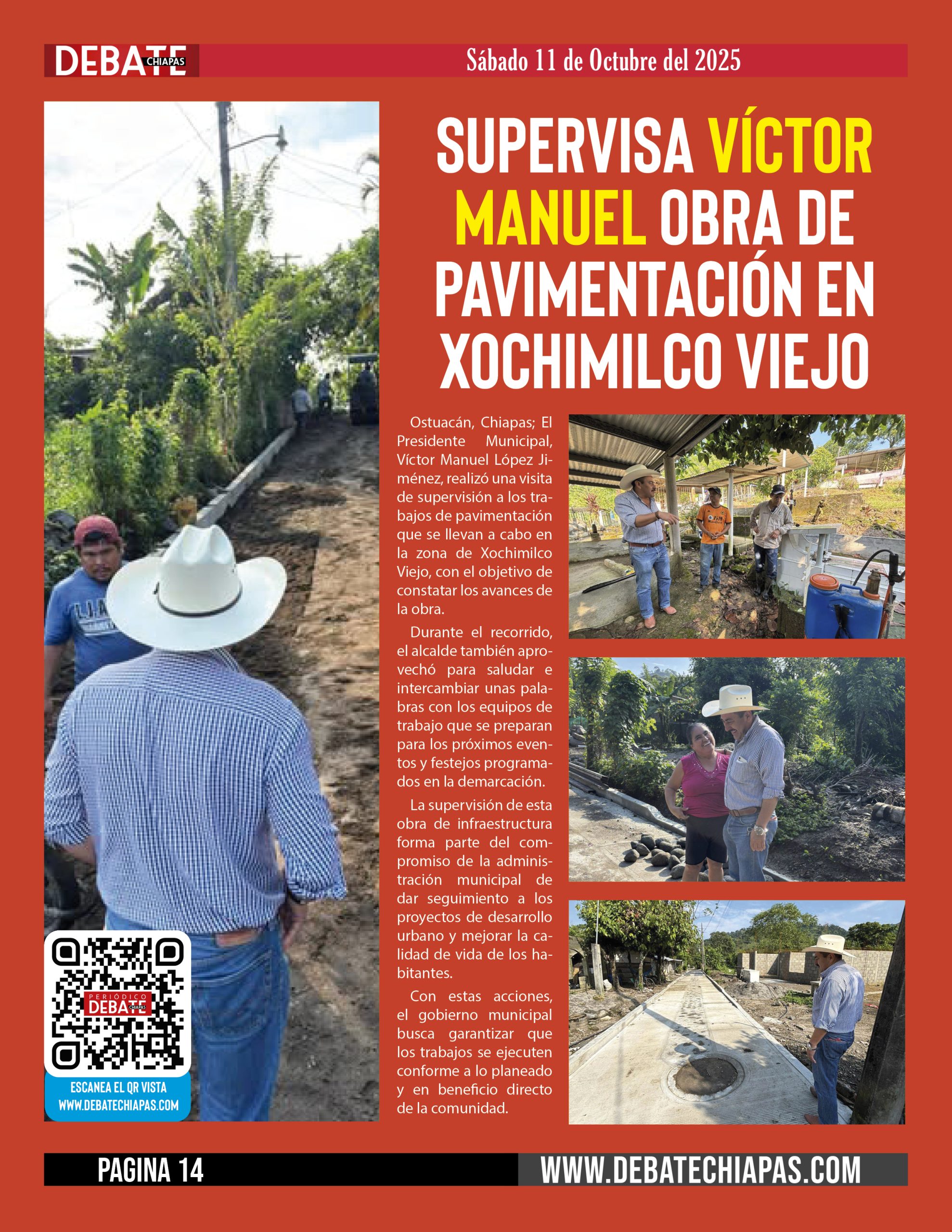 Ostuacán, Chiapas; El Presidente Municipal, Víctor Manuel López Jiménez, realizó una visita de supervisión a los trabajos de pavimentación que se llevan a cabo en la zona de Xochimilco Viejo, con el objetivo de constatar los avances de la obra.