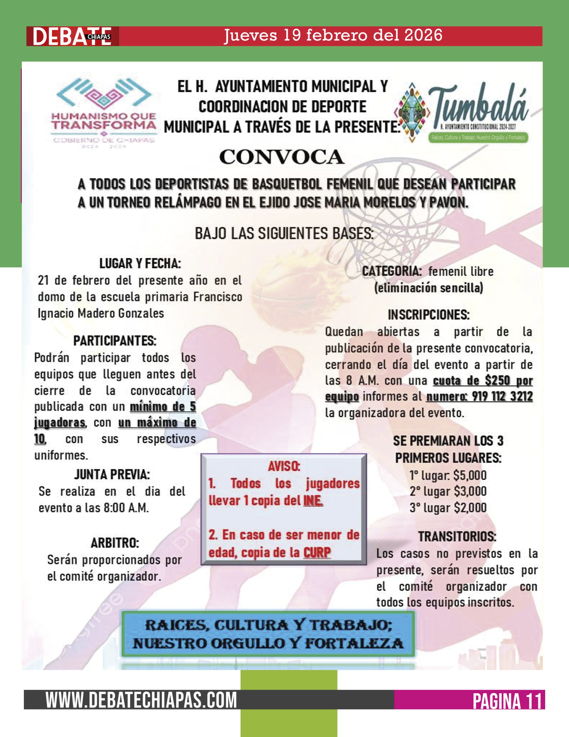 Te invitamos a participar en nuestro emocionante torneo relámpago de basquetbol femenil, donde el talento, la pasión y el trabajo en equipo serán los protagonistas.