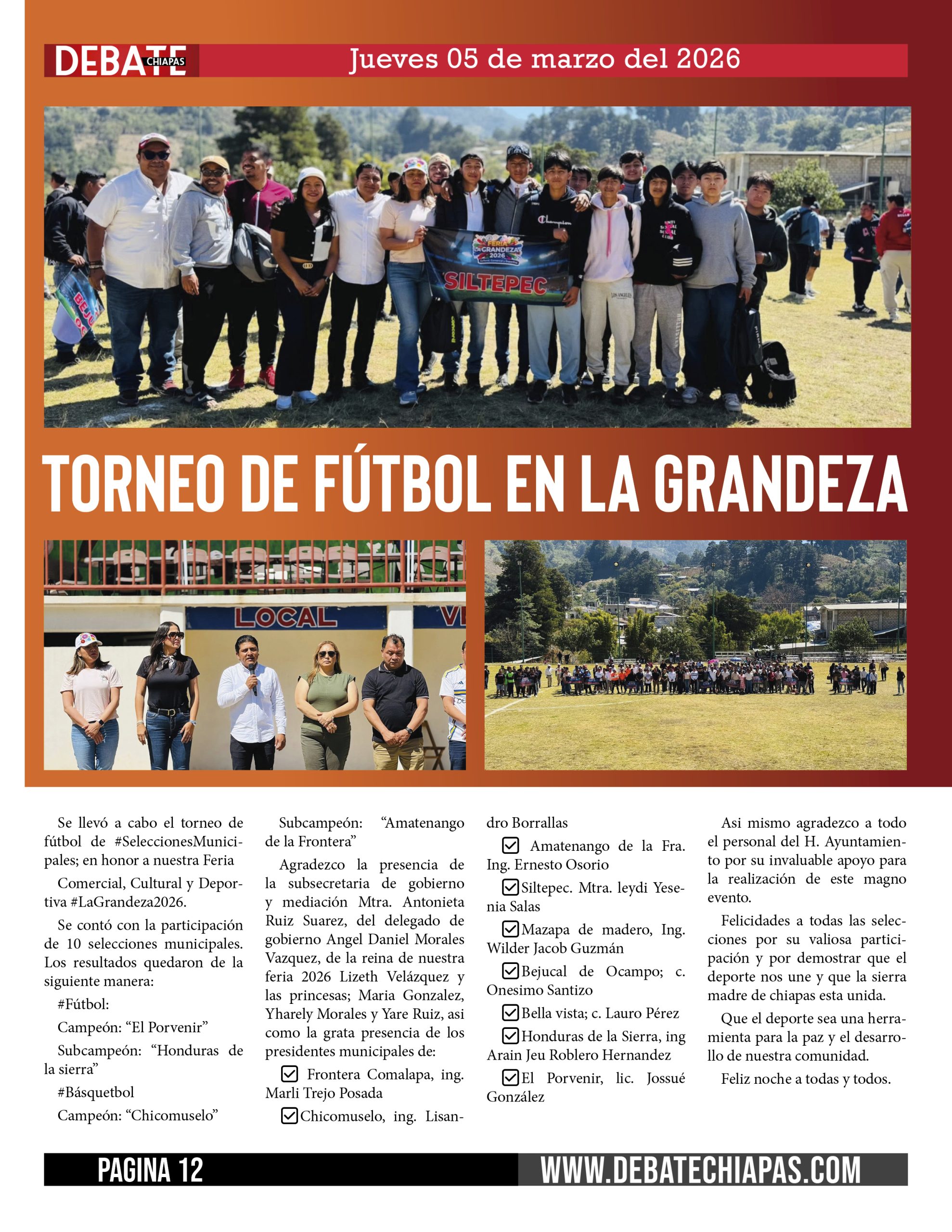 Felicidades a todas las selecciones por su valiosa participación y por demostrar que el deporte nos une y que la sierra madre de chiapas esta unida.