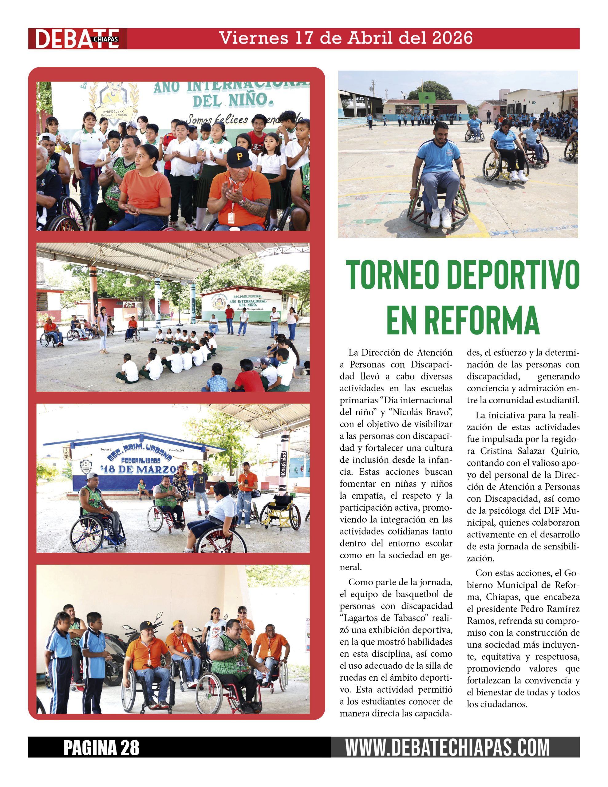 Como parte de la jornada, el equipo de basquetbol de personas con discapacidad “Lagartos de Tabasco” realizó una exhibición deportiva, en la que mostró habilidades en esta disciplina, así como el uso adecuado de la silla de ruedas en el ámbito deportivo. Esta actividad permitió a los estudiantes conocer de manera directa las capacidades, el esfuerzo y la determinación de las personas con discapacidad, generando conciencia y admiración entre la comunidad estudiantil.