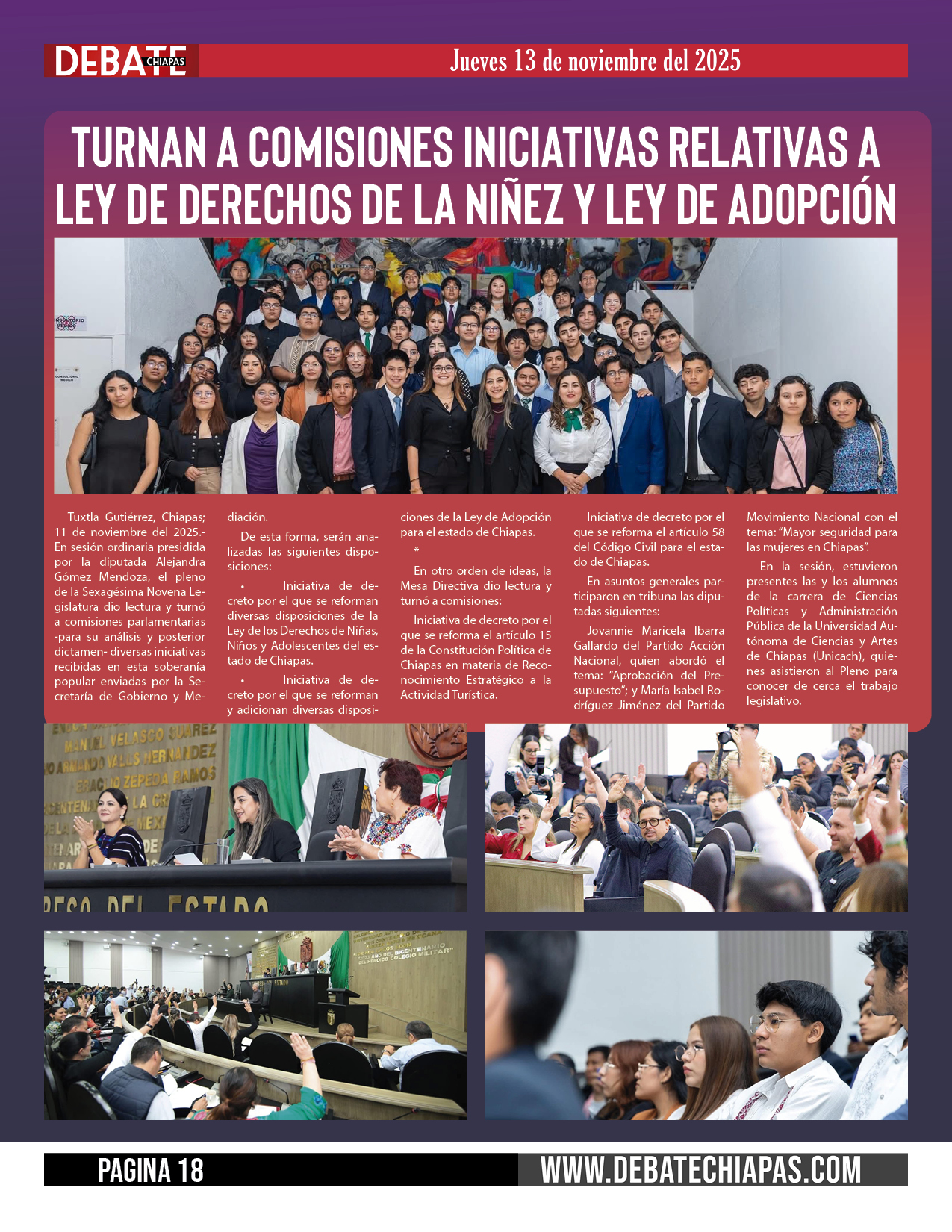 • Iniciativa de decreto por el que se reforman diversas disposiciones de la Ley de los Derechos de Niñas, Niños y Adolescentes del estado de Chiapas.