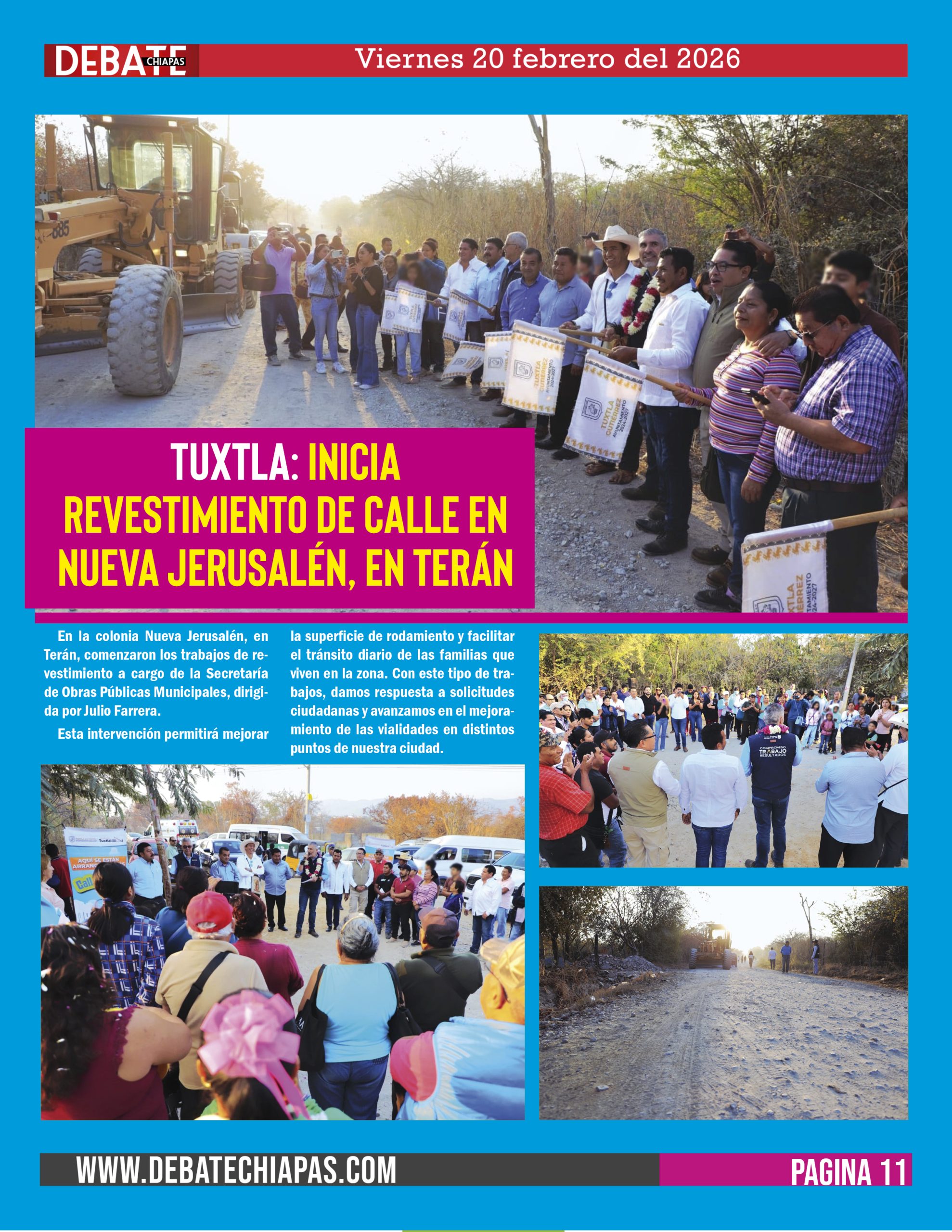 En la colonia Nueva Jerusalén, en Terán, comenzaron los trabajos de revestimiento a cargo de la Secretaría de Obras Públicas Municipales, dirigida por Julio Farrera.