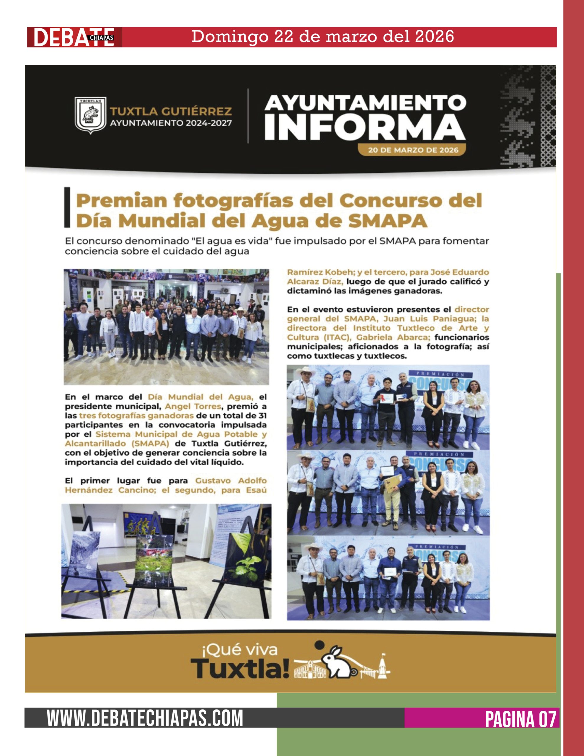 Inicio/General/Tuxtla: Premian fotografías del Concurso del Día Mundial del Agua de SMAPA General Tuxtla: Premian fotografías del Concurso del Día Mundial del Agua de SMAPA Redacción Debate ChiapasHace 4 semanas 31 Menos de un minuto Compartir Redacción Debate ChiapasHace 4 semanas 31 Menos de un minuto Facebook X LinkedIn Tumblr Pinterest Reddit VKontakte Compartir por correo electrónico Imprimir