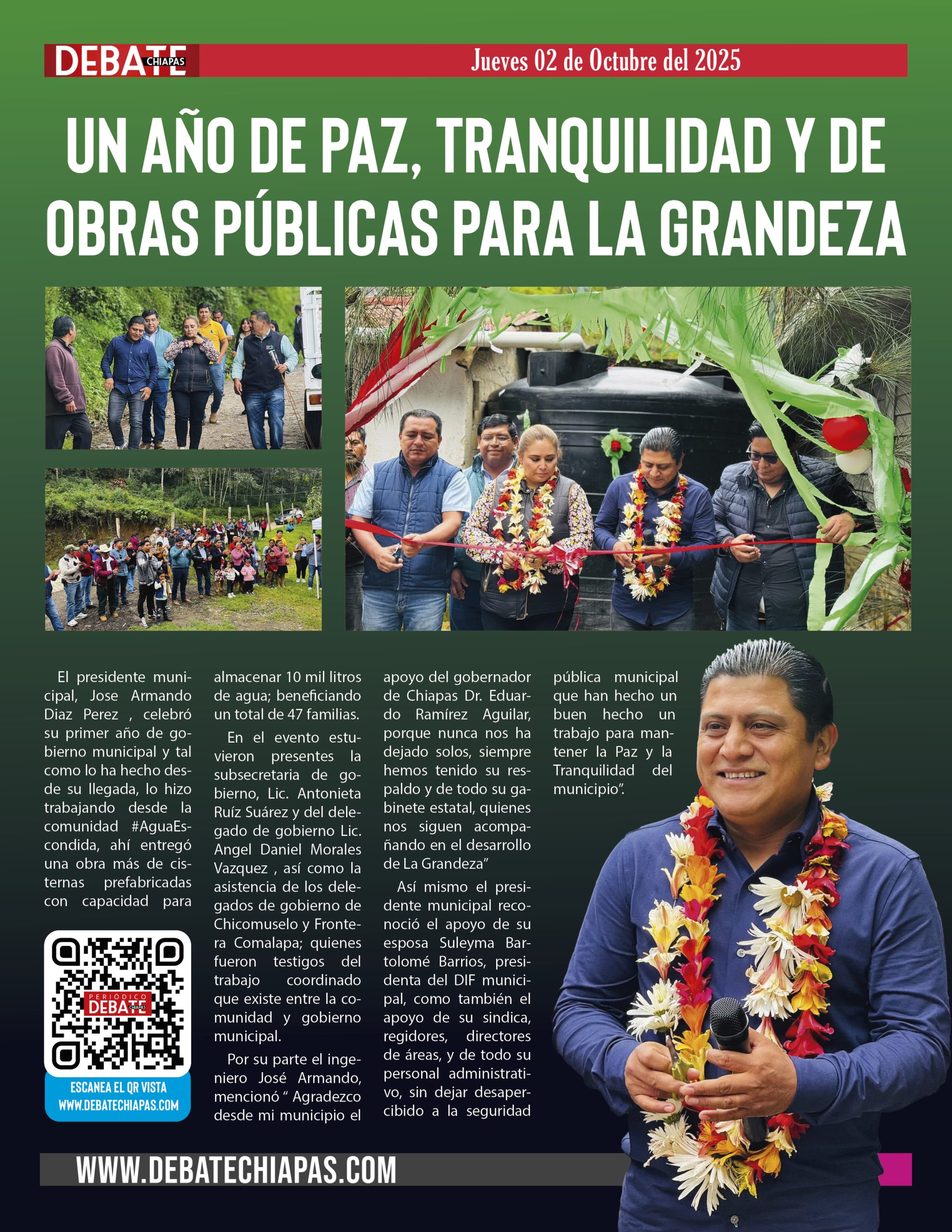 Por su parte el ingeniero José Armando, mencionó » Agradezco desde mi municipio el apoyo del gobernador de Chiapas Dr. Eduardo Ramírez Aguilar, porque nunca nos ha dejado solos, siempre hemos tenido su respaldo y de todo su gabinete estatal, quienes nos siguen acompañando en el desarrollo de La Grandeza»
