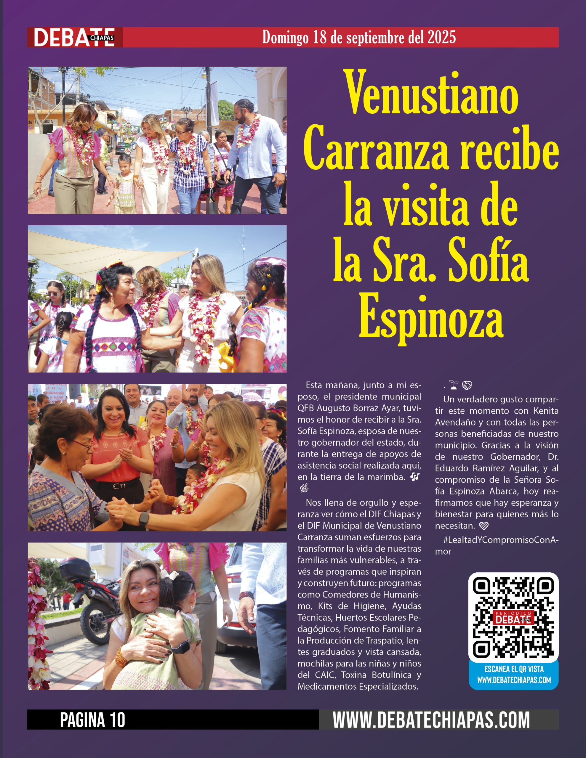 Nos llena de orgullo y esperanza ver cómo el DIF Chiapas y el DIF Municipal de Venustiano Carranza suman esfuerzos para transformar la vida de nuestras familias más vulnerables, a través de programas que inspiran y construyen futuro: programas como Comedores de Humanismo, Kits de Higiene, Ayudas Técnicas, Huertos Escolares Pedagógicos, Fomento Familiar a la Producción de Traspatio, lentes graduados y vista cansada, mochilas para las niñas y niños del CAIC, Toxina Botulínica y Medicamentos Especializados.