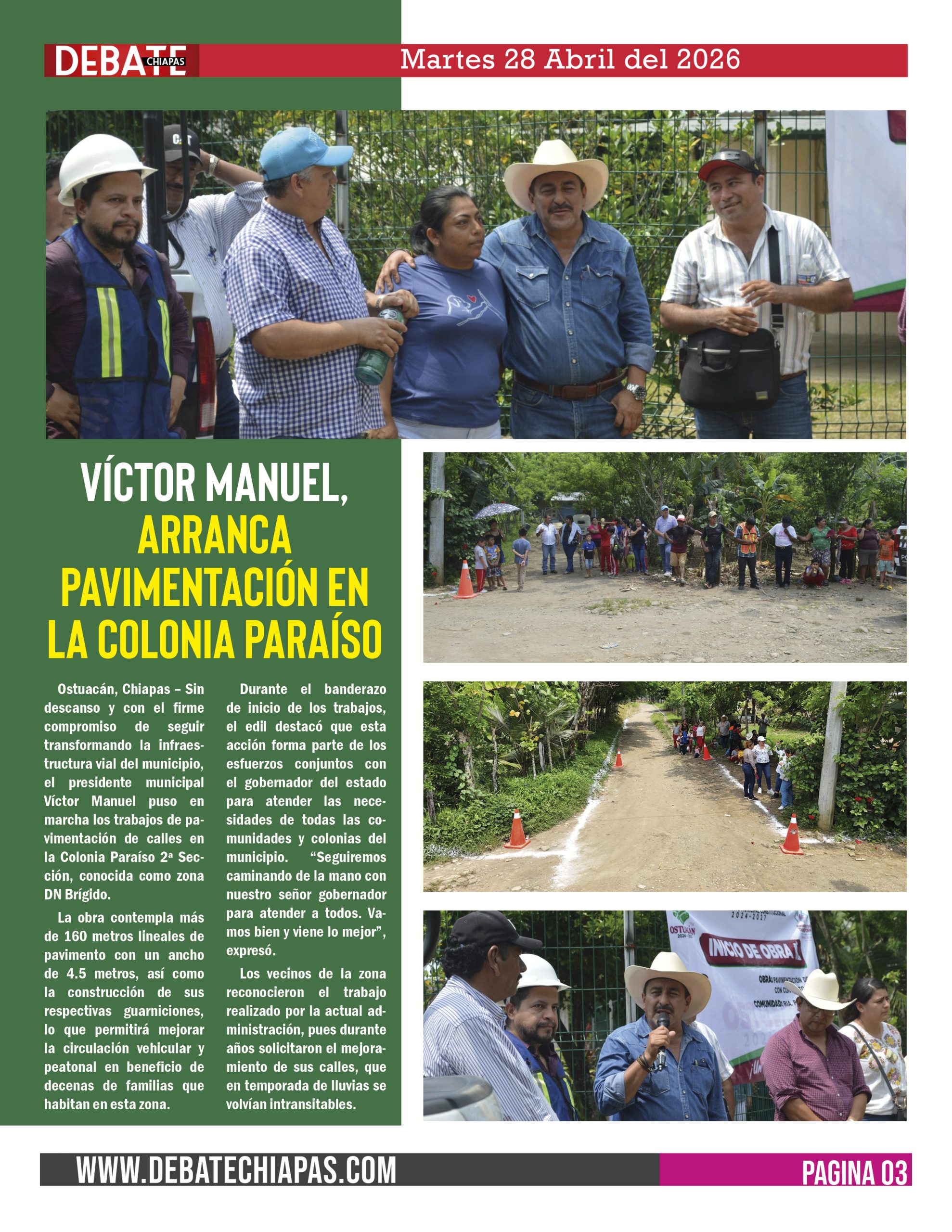 Ostuacán, Chiapas – Sin descanso y con el firme compromiso de seguir transformando la infraestructura vial del municipio, el presidente municipal Víctor Manuel puso en marcha los trabajos de pavimentación de calles en la Colonia Paraíso 2ª Sección, conocida como zona DN Brígido.