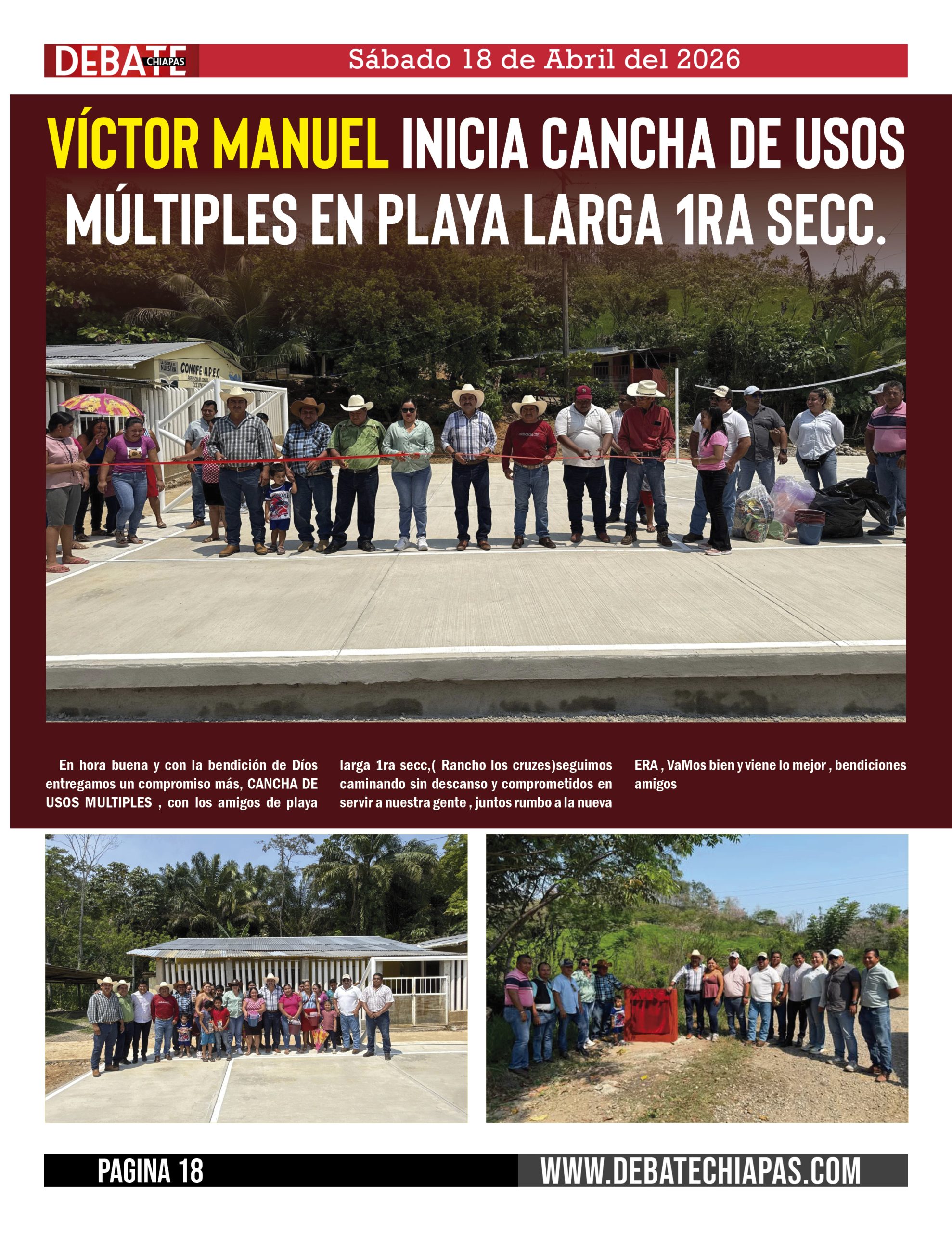 En hora buena y con la bendición de Díos entregamos un compromiso más, CANCHA DE USOS MULTIPLES , con los amigos de playa larga 1ra secc,( Rancho los cruzes)seguimos caminando sin descanso y comprometidos en servir a nuestra gente , juntos rumbo a la nueva ERA , VaMos bien y viene lo mejor , bendiciones amigos
